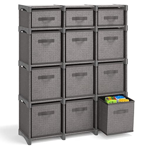 - 12 CUBE STORAGE SHELF: Our storage cubicles are made with sturdy woven fabric and steel bars for extra support. Organize your shelves for wall storage closet with this 12 cube shelf. Cubic storage organizer measures 36.1 L x 11.9 D x 42.7 H.