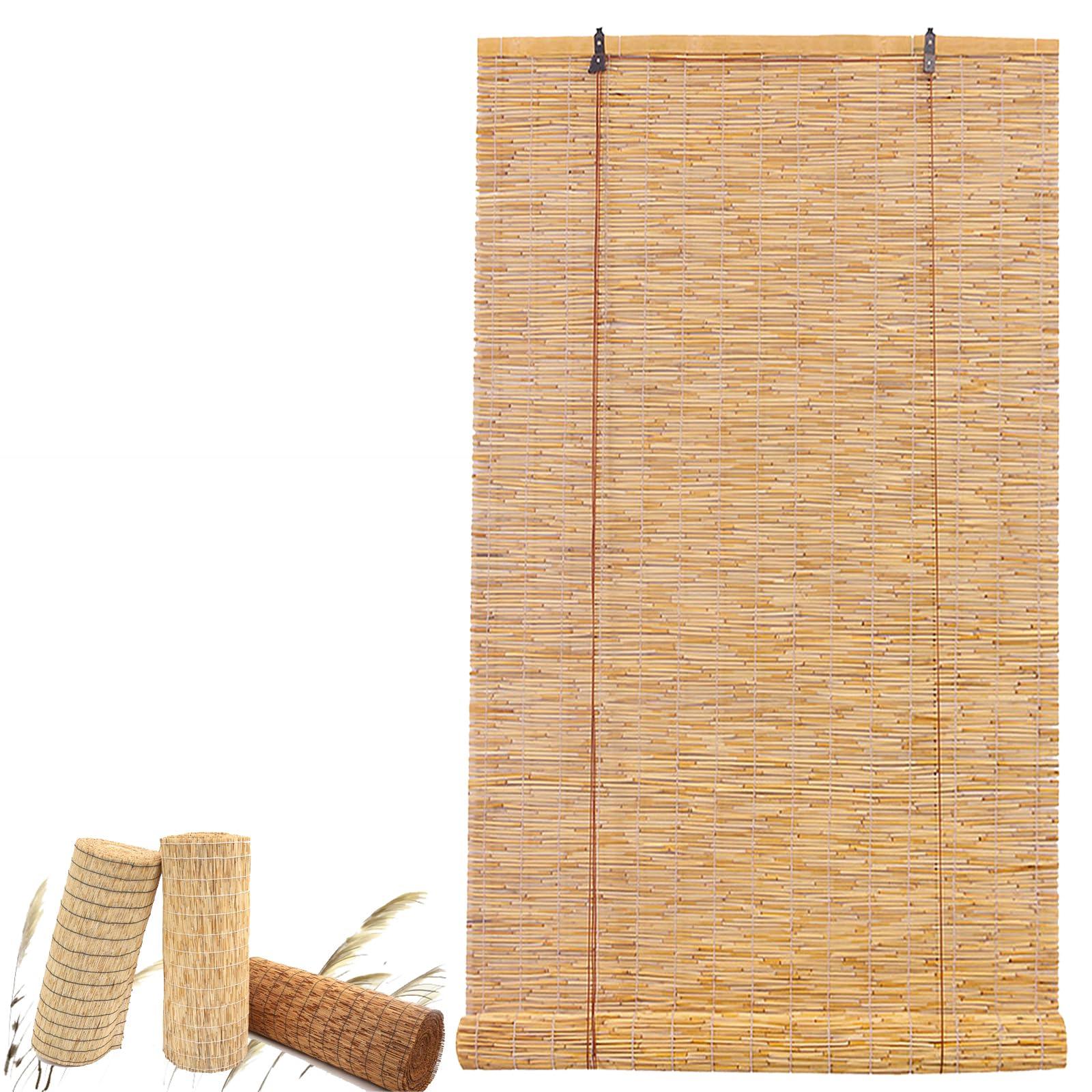 - [Shade and Privacy] The patio shades roll up outdoor have the properties of vacuuming, absorbing moisture and purifying the air. Carbonized reed roller blinds block of the sun, shielding you from the hot summer sun and keeping your room cool. This blinds roll up shade can cover patios, gazebos, living rooms, bedrooms, dens, offices, French doors, meeting rooms, balconies, kitchens or anywhere you need shade.