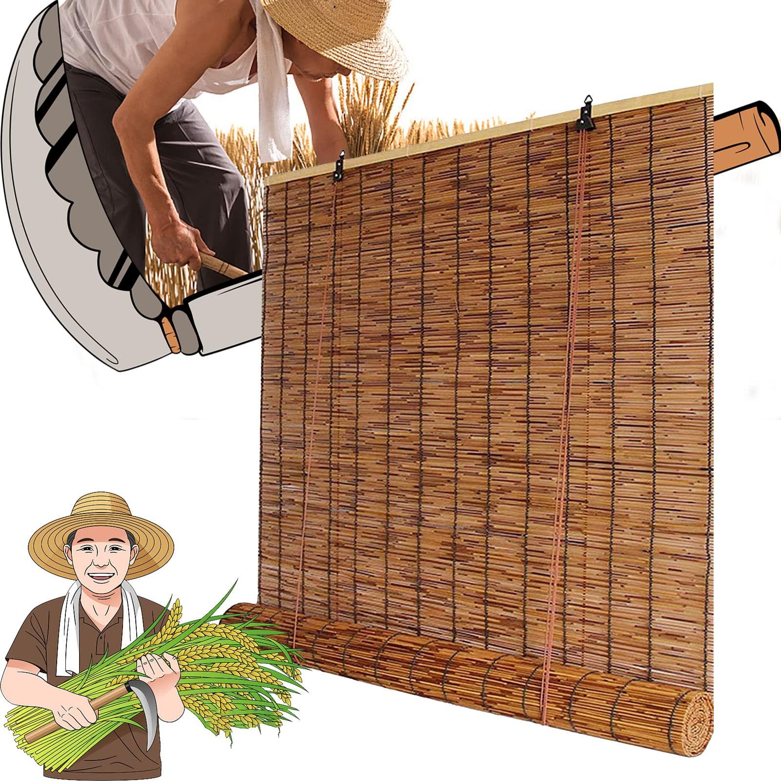 - [Shade and Privacy] The patio shades roll up outdoor have the properties of vacuuming, absorbing moisture and purifying the air. Carbonized reed roller blinds block of the sun, shielding you from the hot summer sun and keeping your room cool. This blinds roll up shade can cover patios, gazebos, living rooms, bedrooms, dens, offices, French doors, meeting rooms, balconies, kitchens or anywhere you need shade.