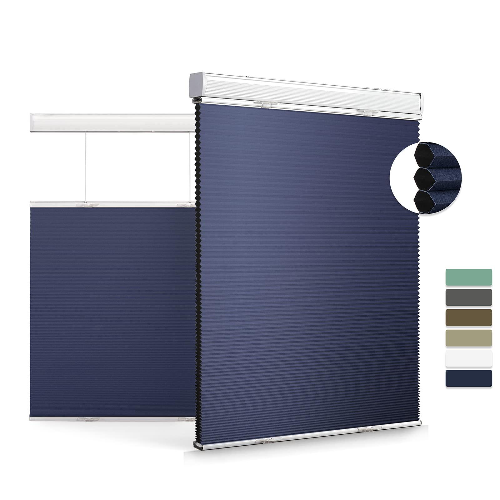 Boolegon Top Down Bottom Up Cellular Shades for Windows Cordless Blackout Honeycomb Blinds Custom Cut to Size, Deep Blue, 46" W x 56" H