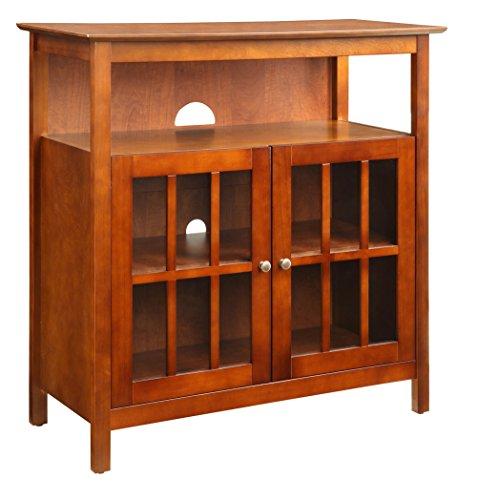 Upgrade your entertainment space with the Big Sur Highboy TV Stand with Storage Cabinets by Convenience Concepts. Set the TV on the top shelf or mount the TV on the wall above the stand to give more space for entertainment essentials and decor. Two exposed tiers of shelving offer plenty of space for a cable box, gaming consoles, and much more. This modern traditional TV stand comes equipped with two cable management holes to avoid the tangling of cords. Two cabinet doors with smooth nickel knobs and tempered glass windows open to two spacious shelves for additional storage and display. This TV stand was built to last thanks to its sturdy construction of real solid pine and birch veneer. Shop the Convenience Concepts Collection today to complete your home dcor, each sold separately