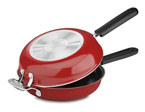 Uses the innovatively interlocking skillets to easily cook and flip your favorite frittata, giving both sides the perfectly browned finish without the mess. Use each pan separately to saute or brown everyday meals, from pancakes and crepes to steaks and stir-fry.