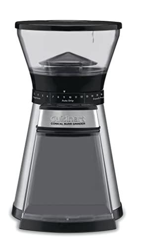 The elegant brushed stainless steel Cuisinart Programmable Conical Burr Mill produces perfect results every time for all your coffee needs with 18 settings, from extra coarse for your French Press to extra fine for rich espresso. The conical burr grinder produces a uniform grind without sacrificing the natural oils of your coffee beans for rich, flavorful results. With an easy-to-read LCD display showing the time, fineness, and number of cups, coffee is easy and fresher than ever.