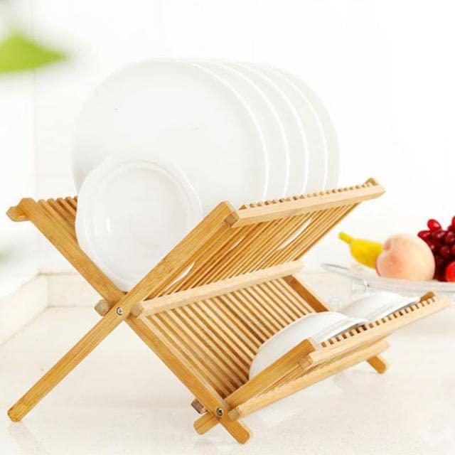 Dish Rack Drying Rack Bamboo Drain Storage Holder Organizer Shelf Kitchen Display Holder Wooden Kitchen Storage Organize