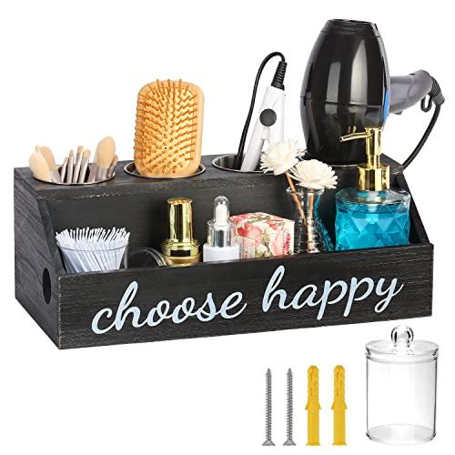 - Rustic Wood Hair Tool Holder- This black hair tools organizer is made of premium solid wood board and stain steel cups. The farmhouse hair dryer holder is rustic and stylish with black painted, cool for home decor & storage containers.