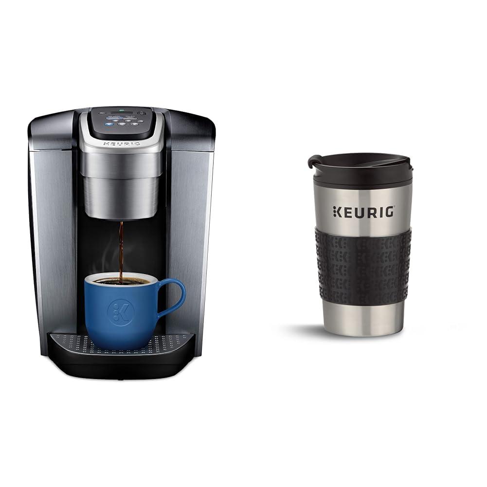 The Keurig K-Elite brewer blends a premium Brushed Silver finish and programmable features to deliver both modern design and the ultimate in beverage customization. With a striking brushed finish and metal details, its a stylish addition to any kitchen. The Keurig K-Elite single serve coffee maker features Strong Brew for when you want to brew a bolder cup of coffee, and an Iced button to brew hot over ice for a refreshing, full-flavored iced coffee. It features five brew sizes, so you can brew your favorite coffee, tea, hot cocoa, or iced beverage at the touch of a button. Choose from hundreds of delicious varieties of K-Cup pods, or brew your own ground coffee using the Universal My K-Cup Reusable Coffee Filter (sold separately). The K-Elite brewer offers programmable features like auto on and temperature control, as well as providing hot water on demand for instant soups and oatmeal, and the large 75oz removable water reservoir lets you brew 8 cups between refills.