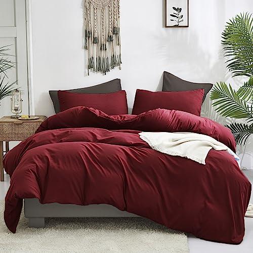 - Design & Target The dark red burgundy color solid modern cotton breathable comforter set will not cause any harm to your skin since we chose the superior material with soft microfiber filling.give you a comfortable sleep. Lightweight and portable features make your travelling and Business trip convenient, healthy and happy.