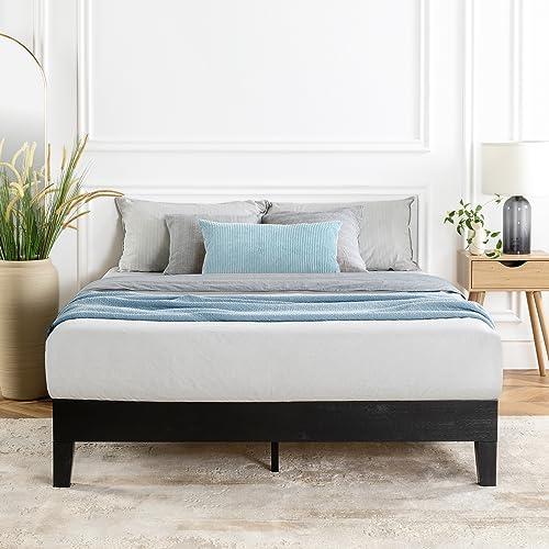 - Solid wood platform bed with wooden slat support, no box spring needed