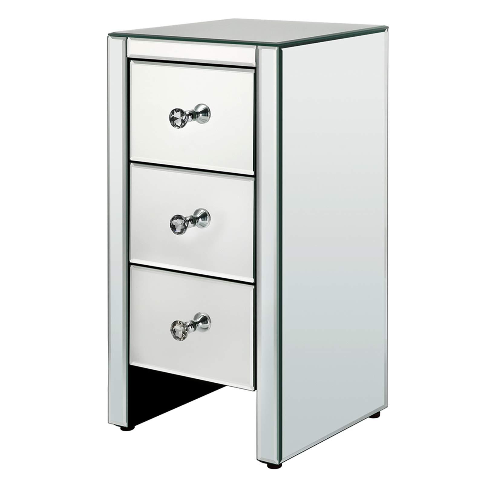 - Our mirrored nightstand is finely crafted with smooth and shiny mirror over the MDF frame, which could blend in seamlessly with any interior decor styles. The mirrored end table can really catch the light beautifully and create a glamorous, sparkling look in your bedroom.