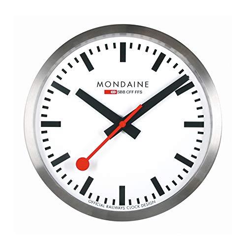 Wall Clock - Metal frame case. White dial with red and black hands and index hour markers. Minute markers around the outer rim. Quartz movement. Scratch resistant mineral crystal. Solid case back. Case diameter: 400 mm. Round case shape. Dial Type: Analog. Mondaine White 400mm Dial Metal Frame Wall Clock A995.CLOCK.16SBB. Employ a smart piece of Swiss ingenuity in your everyday life with a clock from the good people at Mondaine. Sleek, minimalist and modern, these clocks embody the precision steadily ticking along inside every Mondaine timepiece. Amazon.com