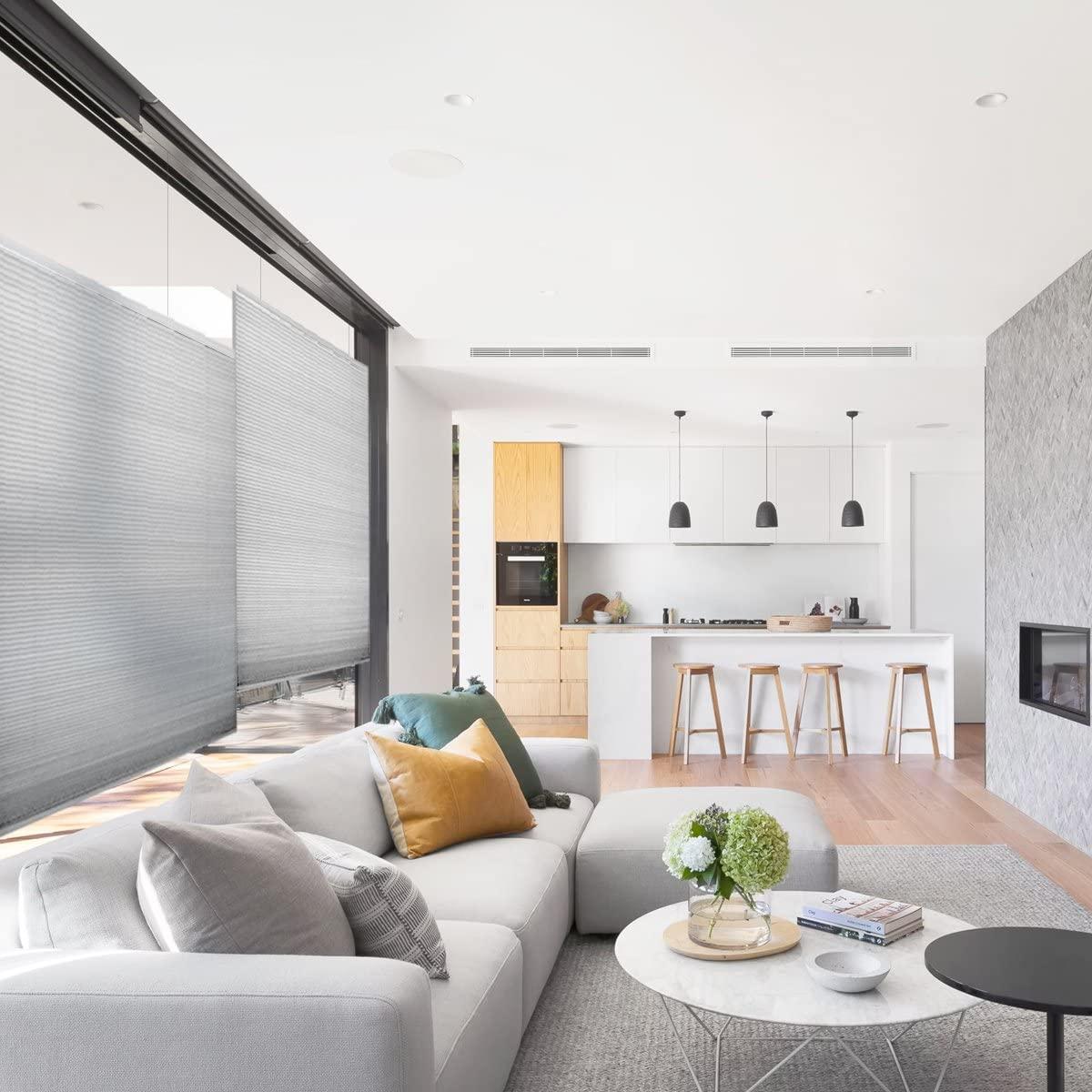 MOOD Top Down Bottom Up Cellular Shades | Luxury Meets Function | Cordless, Light Filtering, Insulation, Acoustic Comfort | Honeycomb Blinds for Windows | Silver | 64" Width x 24" Height