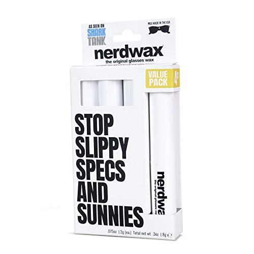 - Nerdwax is an anti-slip eyewear retainer - turns any glasses into non-slip glasses by creating a layer of friction between your glasses and skin. Apply when needed - keeps your glasses in place 1 hour to all day depending on how much you apply.