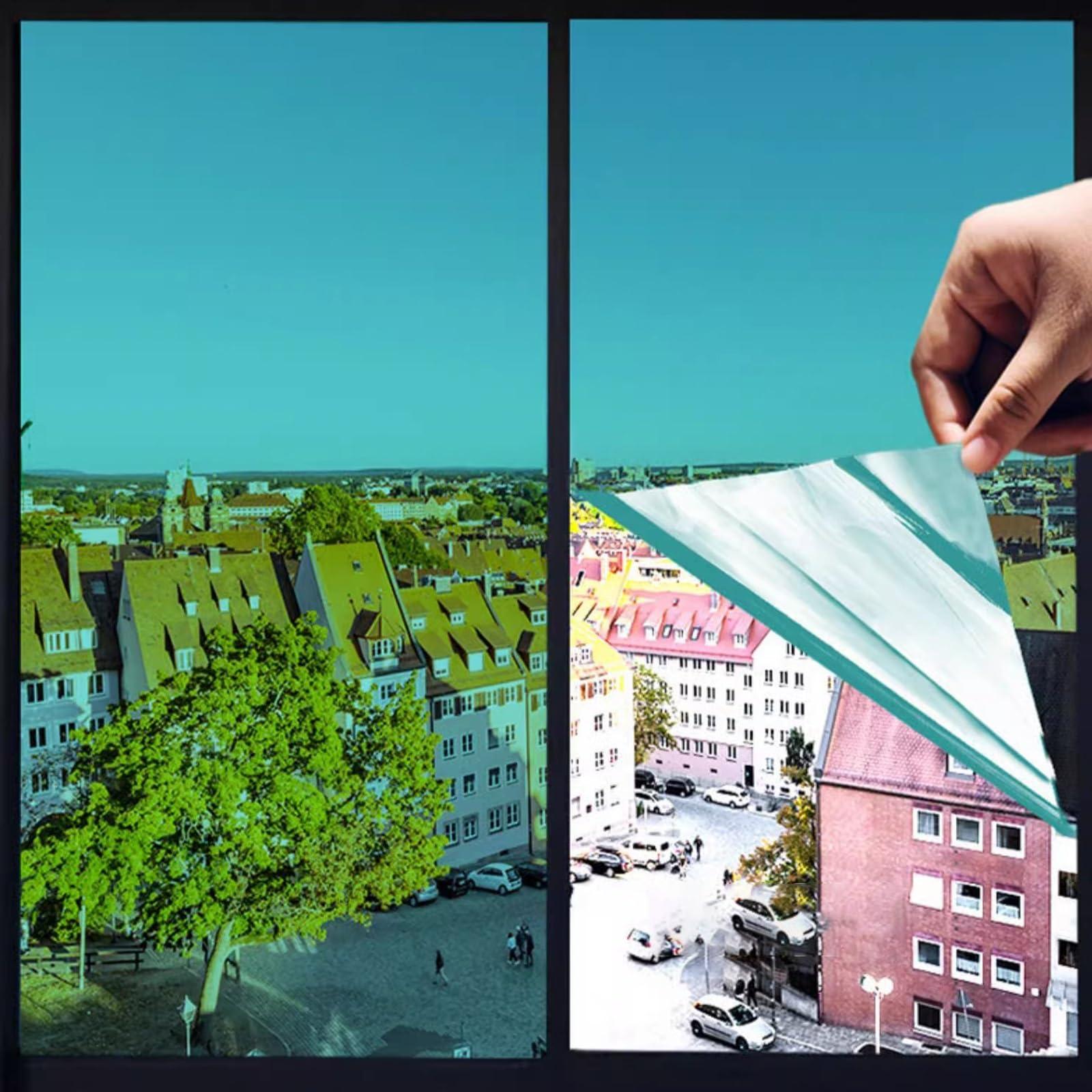 One-way glass film privacy, reflective glass film anti-glare, mirror glass film thermal insulation, glass tinted film blocks UV rays, home, office, silver glass sticker adhesive glass window one-way privacy film reflective window film privacy anti-UV window film anti-glare Window film self-adhesive opaque window film