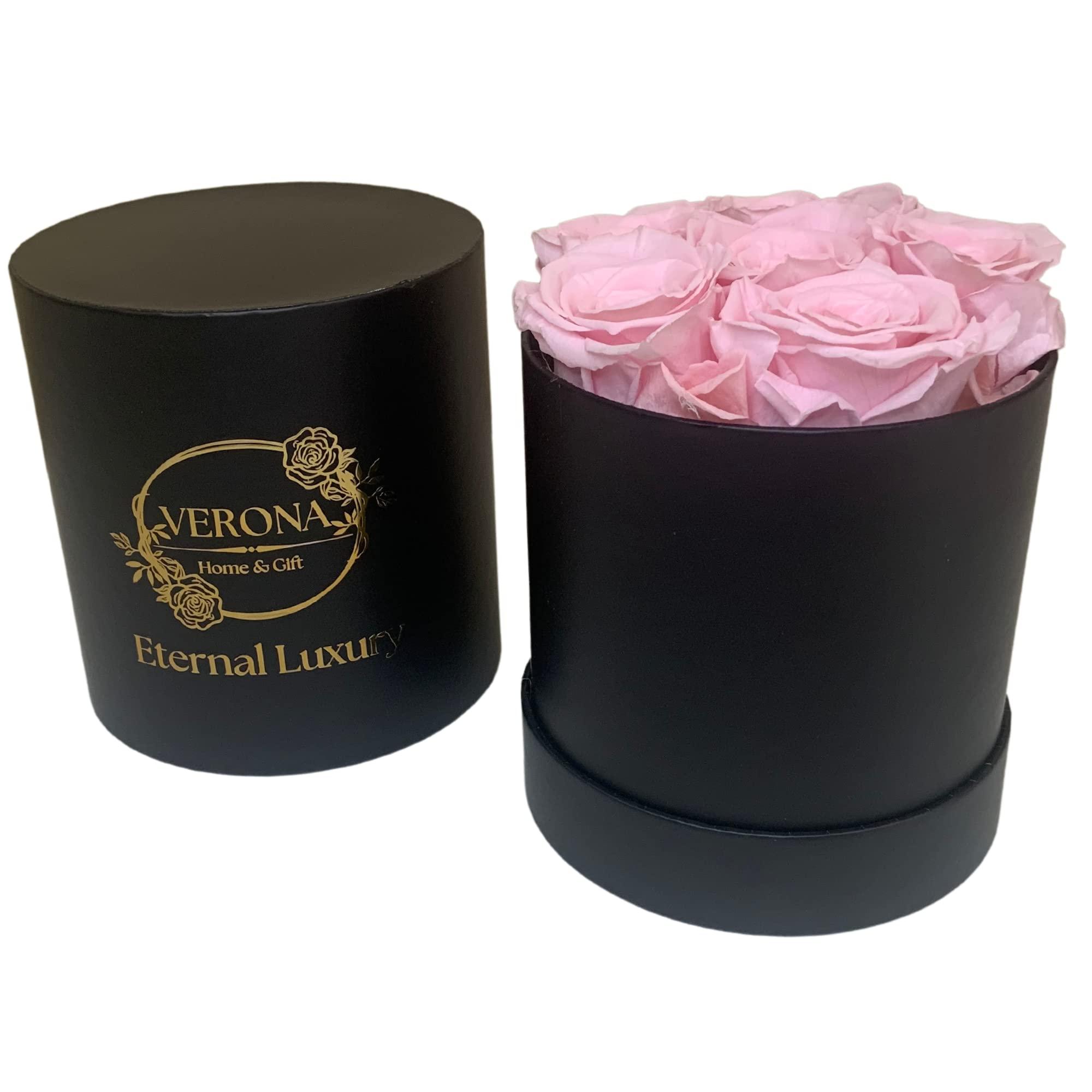 Verona Home & Gift PRESERVED ROSES | GIFT Flowers | 100% REAL ROSES That Lasts for Years | Gift for her | Flowers for ALL OCCASIONS ready to GIFT, Birthday Gift, Valentine\'s Day Gift (6 PINK Roses (black box))