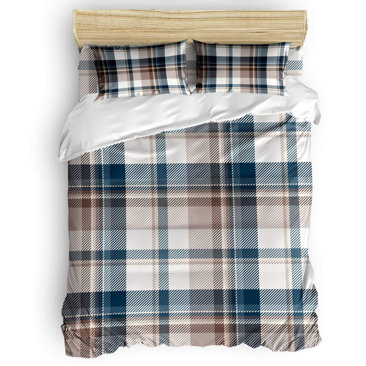 Queen Comforter Covers Sets Simple Blue Brown Checkered 4 Piece Duvet Cover Set Lightweight Microfiber Soft Bedding Set for Adult Teen, Simple Line Intersect