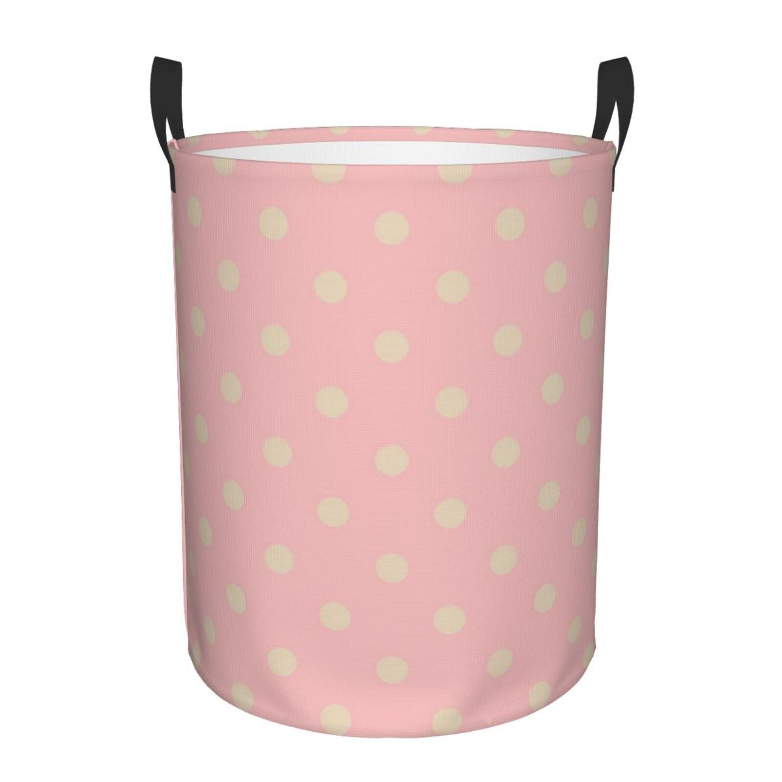Retro Beige Polka Dot Pink Laundry Hamper with Durable Handle Waterproof Foldable Laundry Basket Circular Dirty Clothes Storage Basket for Home Bathroom Office Nursery