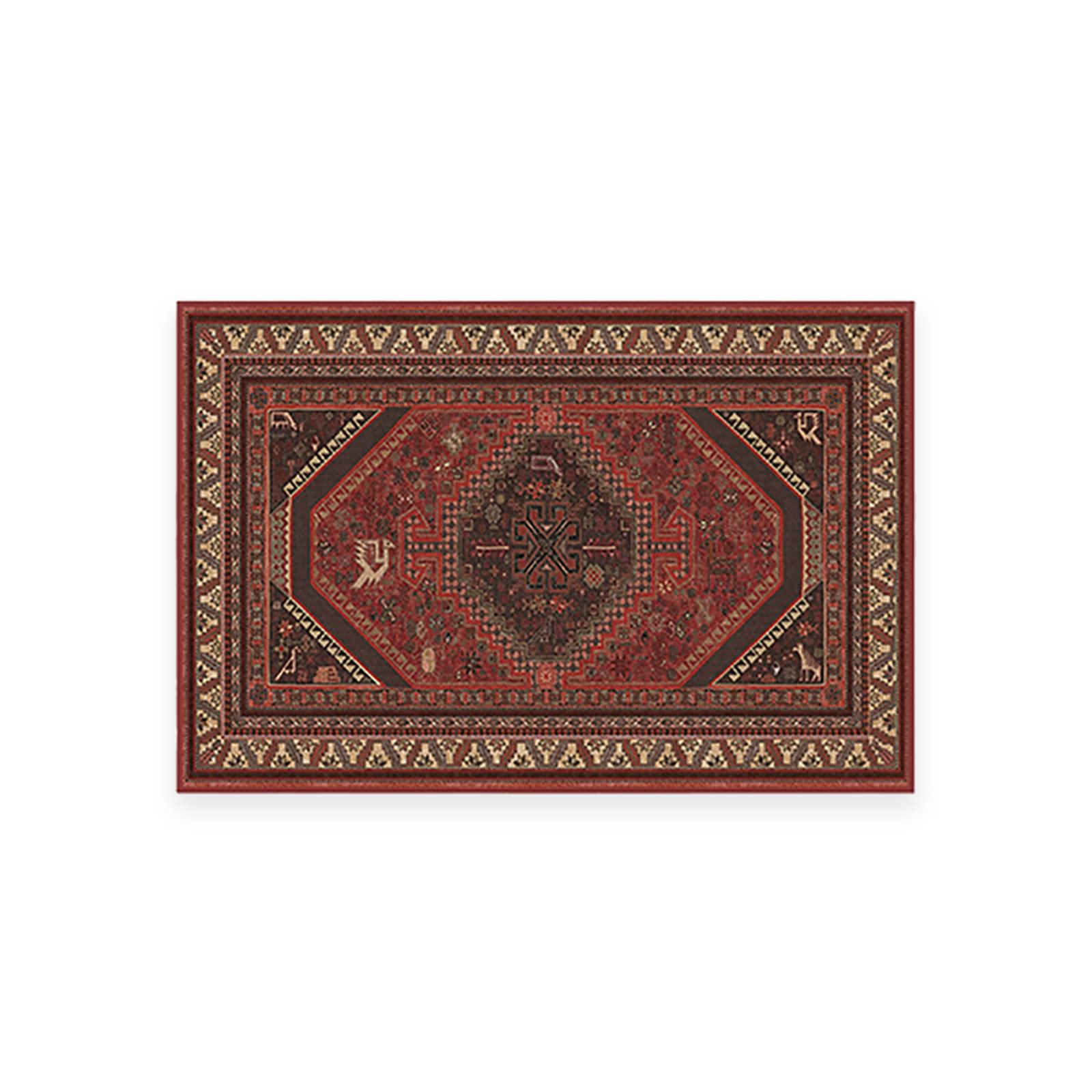 - TIMELESS STYLE, MODERN RUG TECHNOLOGY: Tinted in bold and vivid hues of rich red, with pops of light yellow and chocolate brown, this bordered Washable Area Rug features animal figures peppered around hexagon and diamond shapes