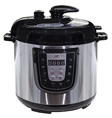 The SPT 6qt Digital Pressure Cooker has 10 pre-set cooking programs including soup/stew, meat/chicken, beans/potatoes, yogurt, brown/saut, rice, slow cook, cake, steam and sterilize. The pre-set programs make it easy to prepare a variety of meals with the touch of a button, minimizing time spent in the kitchen. Food is kept warm after the set cooking time until ready to consume. The delay timer function can set a later cooking time for up to 24 hours, allow you to prep the food ahead of time and cook while you are away. It replaces common kitchen appliances and tools such as slow cooker, rice cooker, steamer, yogurt maker, multiple pots and pans for saut/browning, makes the countertop less clutter. The pressurized cooking method seals the food in and cooks at a higher temperature and greater humidity than traditional methods such as boiling, steaming and frying. It allows the steam to be trapped and effectively tenderizes food at a faster pace without drying, at the same time preserving more flavor and nutrients. The user-friendly features makes cooking and cleaning easy, great for people that are on-the-go.