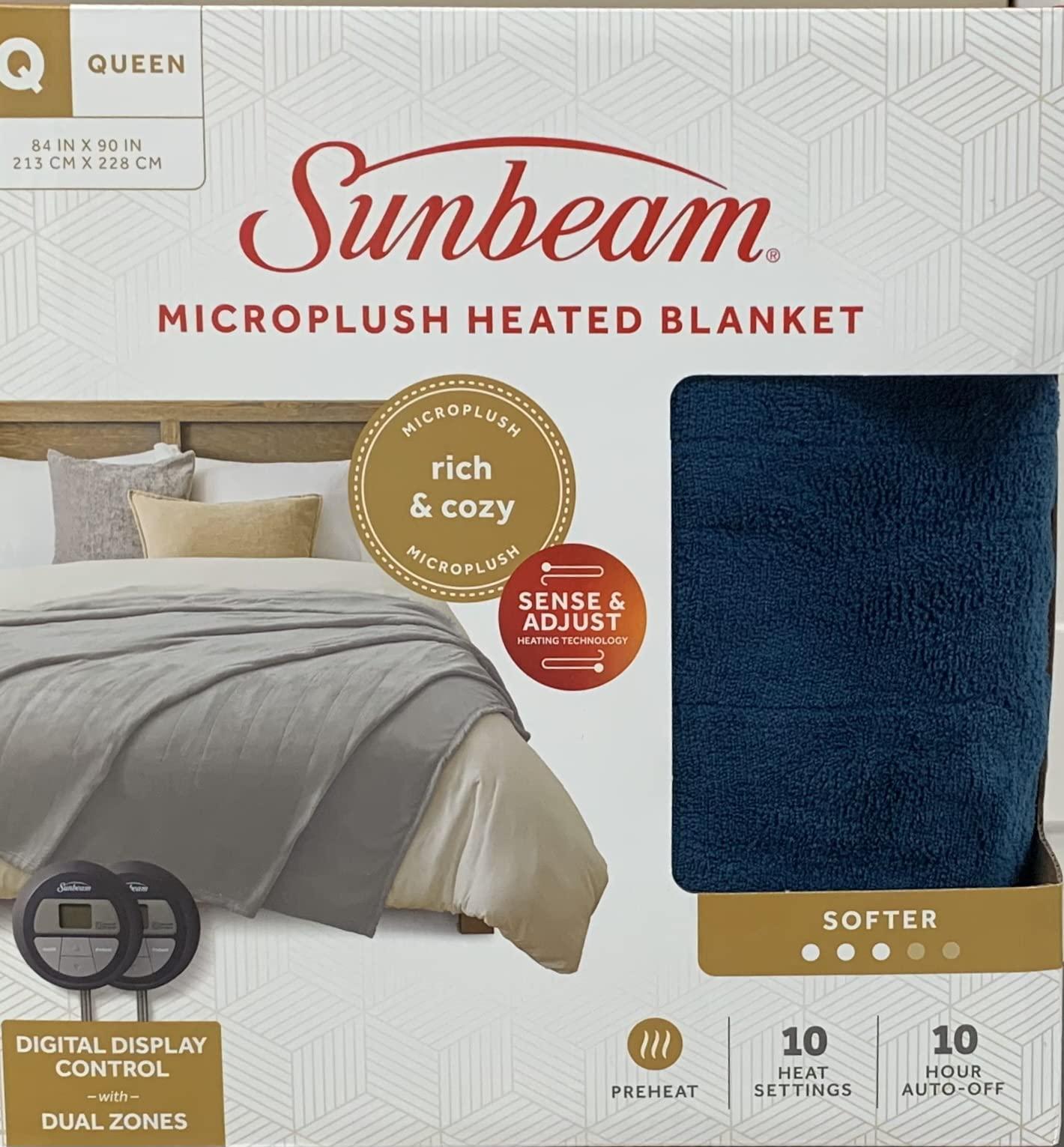 This plush Sunbeam Microplush Heated Blanket wraps you in warmth with ThermoFine technology to auto-adjust for consistent heat control and 10-heat settings. Digital Controller offers preheat setting to warm up cold sheets so you can slip into toasty comfort at bedtime. Also features auto-off for added peace of mind. Machine-washable.