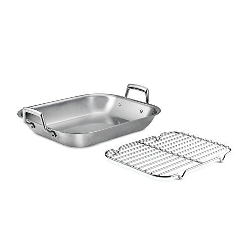 The Tramontina gourmet Prima Stainless Steel roasting pans with basting rack are great for everyday meals and elegant feasts, these handsome, hardworking pans make it simple to prepare everything from perfectly roasted meats, poultry, potatoes and fresh vegetables. The premium restaurant-quality 18/10 stainless-steel construction is long-lasting while the heavy-duty, Stainless Steel mirror-polished handles are riveted for extra durability. The low flared-edges promote even cooking and add a great look for your kitchen. Roasting pan includes removable electro-polished Stainless Steel basting rack. Part of the Tramontina gourmet collection, which features timeless products crafted especially for the cooking enthusiast. Made in Brazil, assembled and packaged in USA and offered under lifetime .
