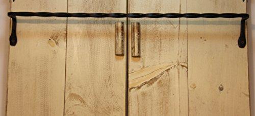 Our hand wrought iron pieces are made for us in the Lancaster County, PA. Amish Community. With classic style and functional design, these versatile pieces blend into most decorating schemes. This is solid iron-not wire. These pieces are finished in satin black and work well in the bath or kitchen. This is our twisted iron 24 inch towel bar. This towel bar is approx. 24 inches long and extends from the wall 2 3/4 inches. It easily holds two bath towels or several small towels. (We also offer a 17 inch bar-search for item B0002B0354) This can be mounted on any flat wall surface or even under a cabinet. Wall anchors or screws are not included.
