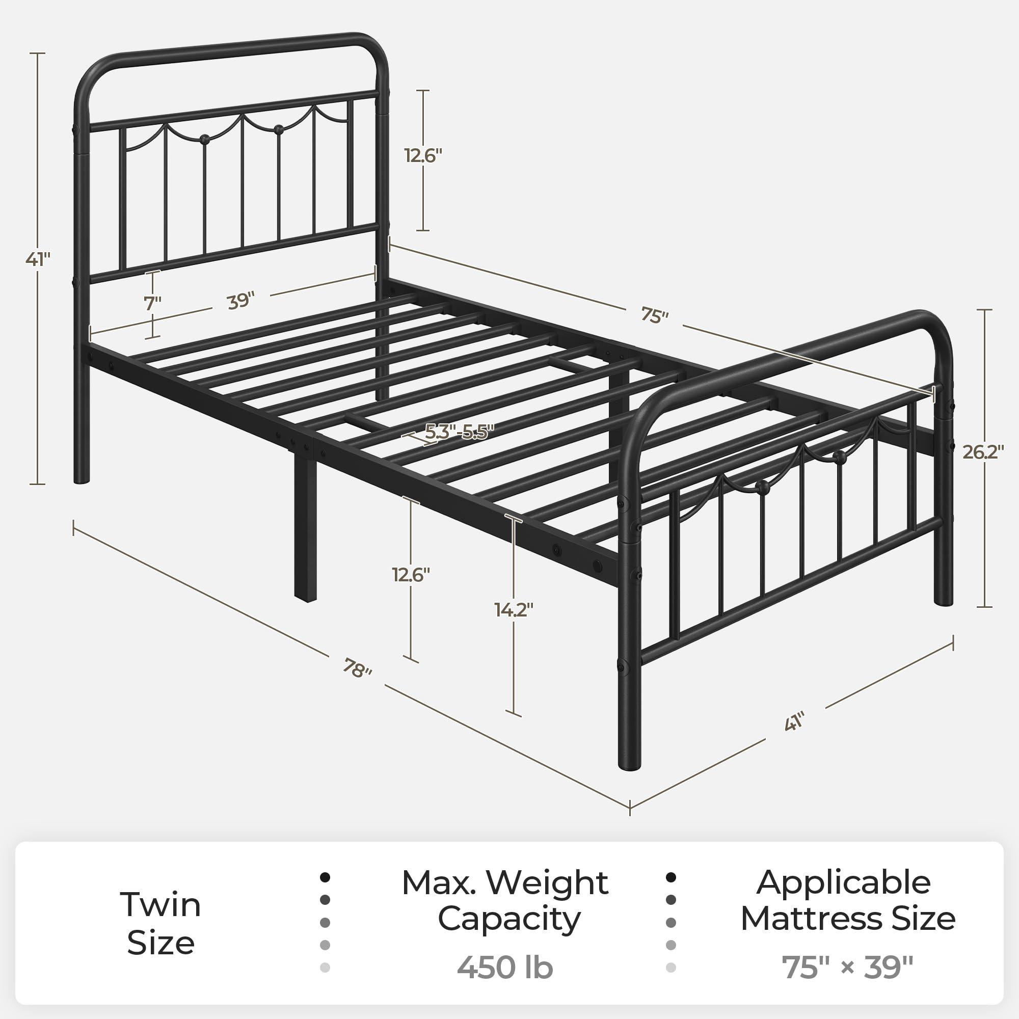 - BUILT FOR A RESTFUL NIGHT'S SLEEP: This twin size black metal bed features heavy-duty steel side & center rails, 12 built-in metal slats and 6 support legs, providing a maximum weight capacity of 450 lb and ensuring that whenever you sleep you won't be bothered, squeaky noises.