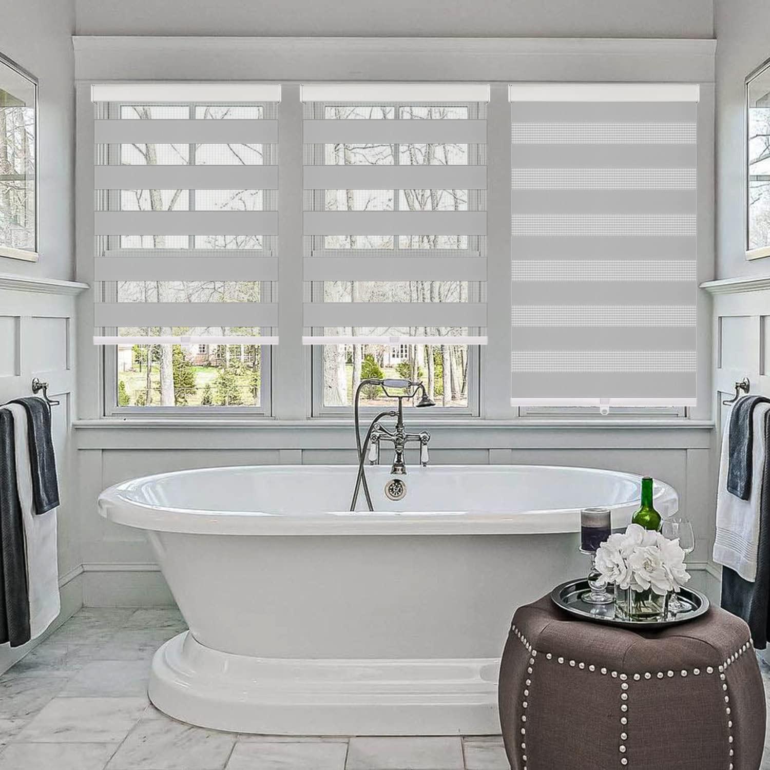 - PREMIUM QUALITY FABRICzebra blinds for windows is made of 100% high quality polyester fiber and aluminum alloy. The fabric is made by laser cutting process, which is flat and not easy to fall off; the aluminum hood and lower beam are strong and durable for long-term maintenance